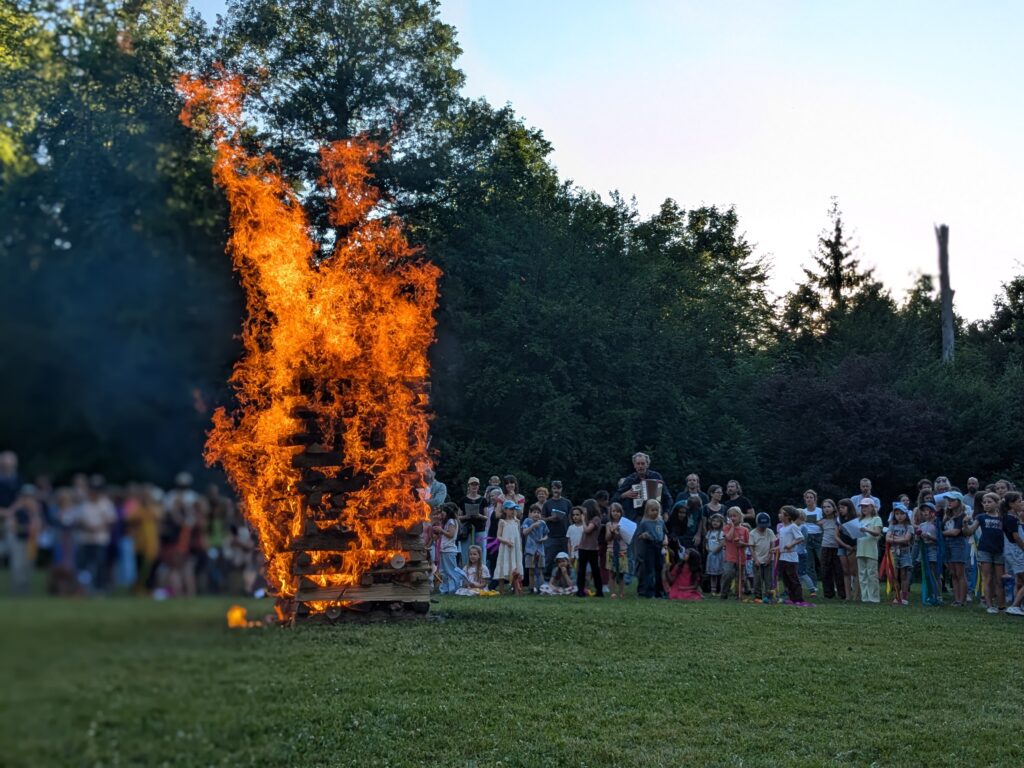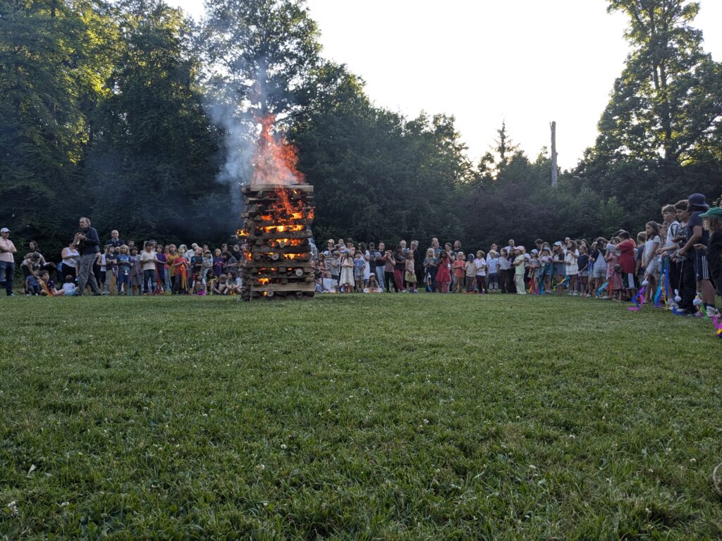 Bei schönstem Sommerwetter feierte die Rudolf Steiner Schule Zürich am Freitagabend, 28. Juni, ihr traditionelles Johannifest auf der Escherwiese hoch über der Stadt Zürich. Es wurde viel gespielt, gelacht, getantzt und gesungen, bis dann beim Eindämmern die 5. Klasse mit ihren Fakeln das grandiose Feuer entfachen durften.
